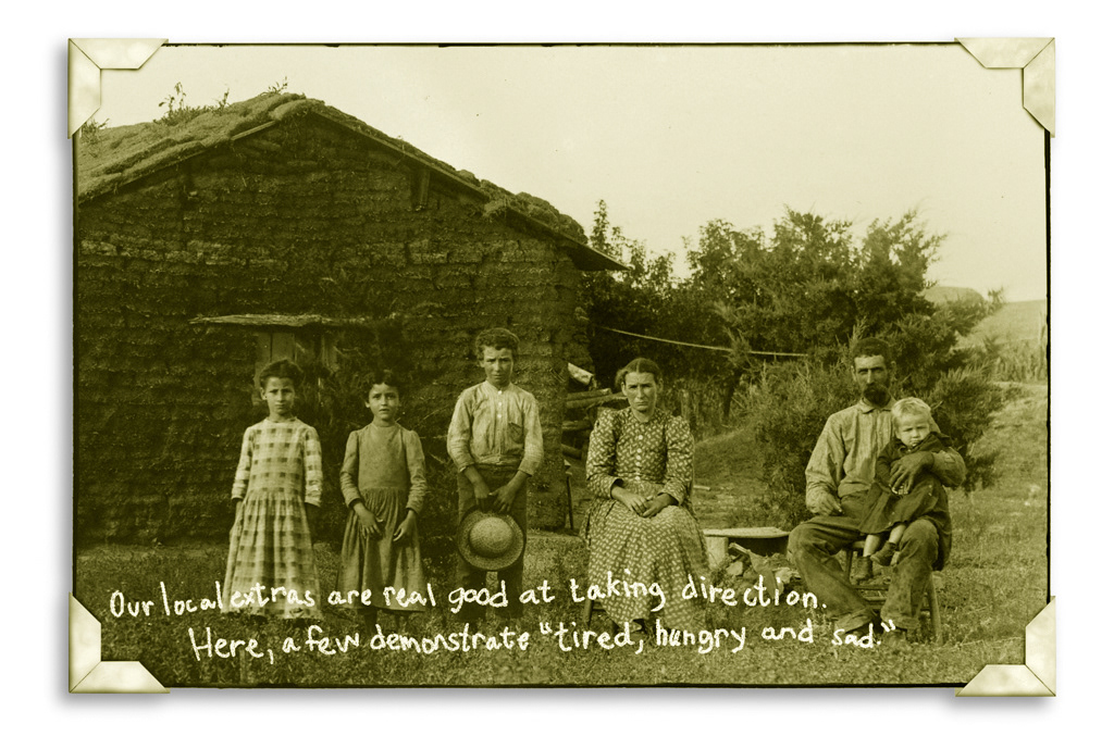 Our local extras are real good at taking direction. Here, a few demonstrate "tired, hungry and sad."